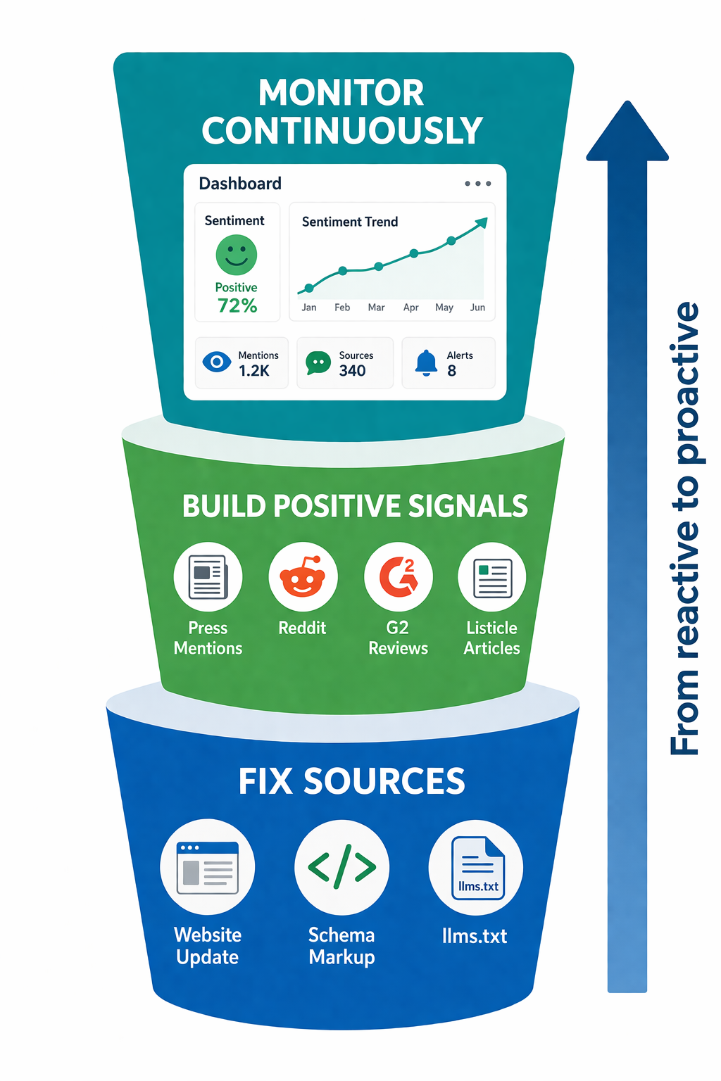 Fixing errors is defensive work. Building positive signals is how you shape the narrative going forward. Since 85% of brand mentions in AI responses come from third-party pages, your own website isn't enough.